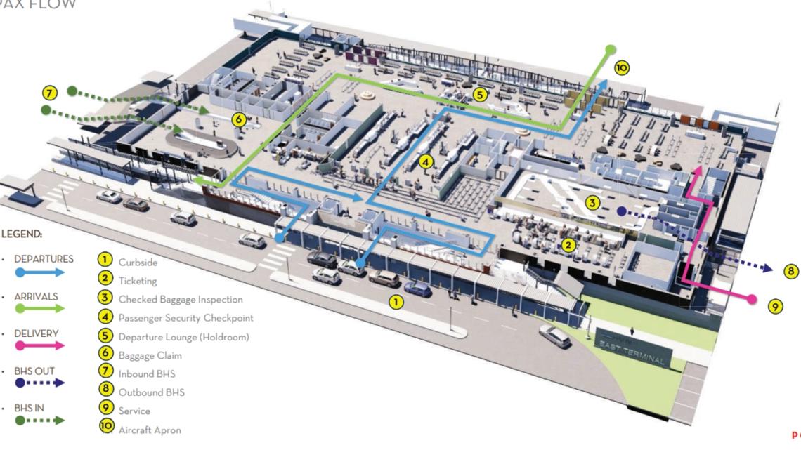 Airport officials say that the design for the new 84,000-square-foot East Terminal is 60% complete. The terminal layout, footprint and systems planning are set.